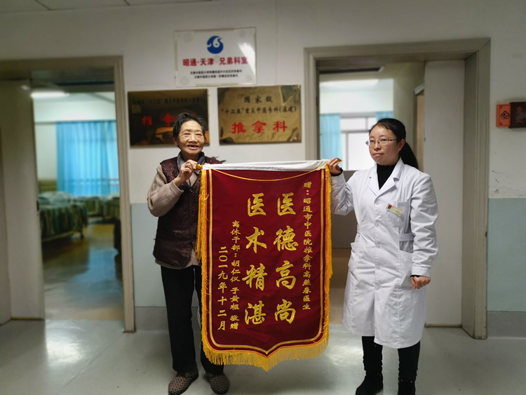 近日,一名92岁高龄患者携家人到我院推拿科赠送了一面题为“医术精湛、医德高尚”的锦...