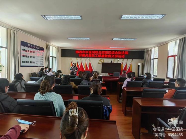 为进一步倡导文明健康生活方式,提高群众的防病治病意识,弘扬中医药文化,3月15日下午,我院慢病管理中心邀请皮肤科、呼吸内科、南顺城疼痛科、名医堂中医妇科专家组成健康管理团队,联合昭阳区城市管理综合执法局开展关爱女性职工健康义诊及慢性病管理知识宣讲活动。