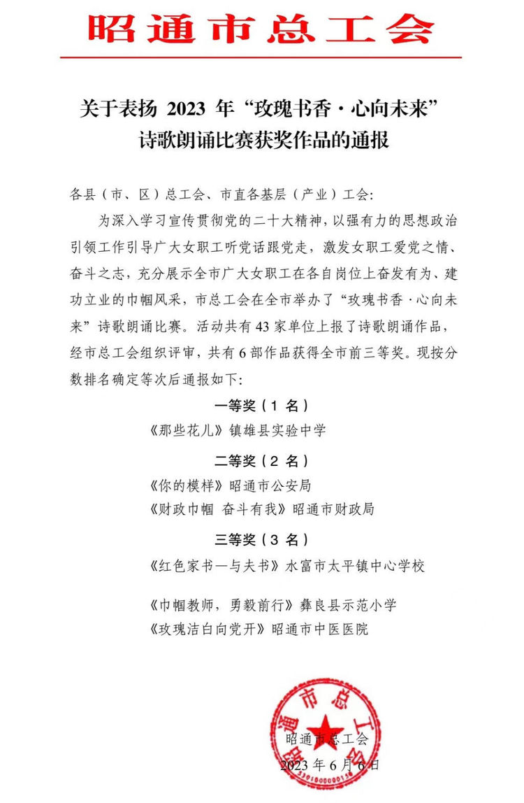 为深入学习宣传贯彻党的二十大精神,引导广大女职工听党话跟党走,激发女职工爱党之情、奋斗之志,充分展示全市广大女职工在各自岗位上奋发有为、建功立业的巾帼风采,2023年4月—5月,昭通市总工会在全市举办了“玫瑰书香·心向未来”诗歌朗诵比赛。