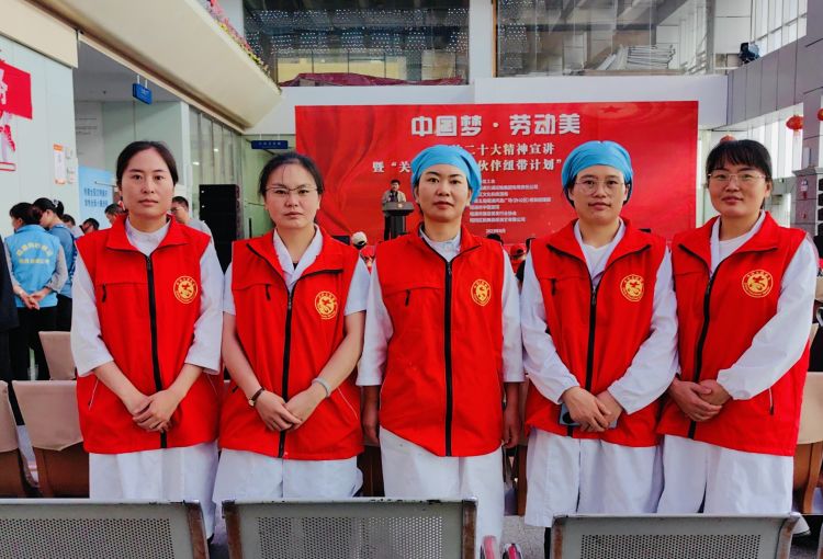 为深入学习宣传党的二十大精神,扎实推进昭通市“关爱职工公益伙伴纽带计划”工作,竭诚服务职工群众,将优质医疗服务送到百姓身边,8月21日上午,我院外联办、工会组织发热门诊、皮肤科及南顺城针灸一科5名医护人员参加昭通市总工会在昭通新客运站组织开展的党的二十大精神宣讲暨志愿服务系列活动。