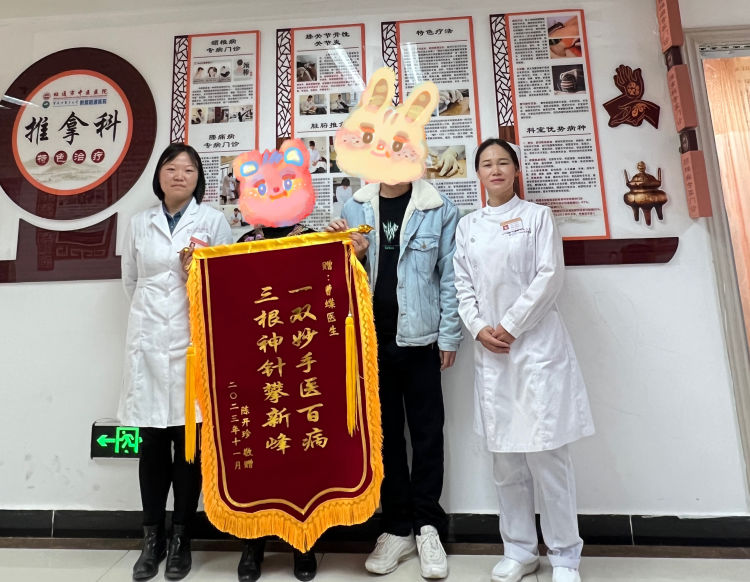 像这样成功治愈的患者数不胜数,一面面锦旗只是医院全体医护人员精心守护病患健康的缩影。锦旗传递的不仅是患者对医护人员的感激和认可,更是我们不断前进的不竭动力,也激励着广大医务人员秉承“以患者为中心”的服务理念,以专业的技术服务病人,让患者更舒心、家属更放心。(供稿/推拿科 曹蝶)