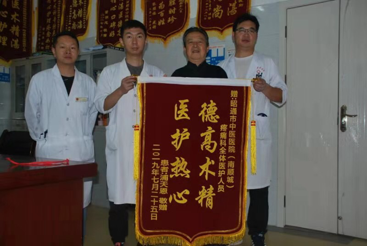 再次来院时,患者激动地说:“我现在腰不疼了,走路也不受影响了,我这十年的病痛一朝解除了”。朴实的话语透露出最真挚的感谢,鲜红的锦旗表达了对医护人员的肯定。我院将以此为动力,把每一位病人当做亲人,全心全意为患者提供最优质的医疗和护理服务。(通讯员/疼痛科 赵欣)