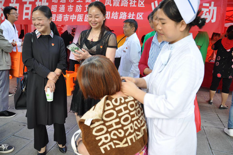 南顺城分院选派老年病科、针灸科、疼痛科、眼科、耳鼻喉科、脾胃病科、肛肠科等9个科室共20余名医务人员到团结路社区开展中医药文化进社区服务活动。本次活动主要针对团结路和凤霞路社区所有居民,开展了免费义诊及针灸、拔罐、刮痧、眼贴等,并向群众发放中医药宣传资料、免费测血压、血糖。义诊当日下午,由老年病科朱新莲开展慢病心脑血管疾病健康知识讲座。