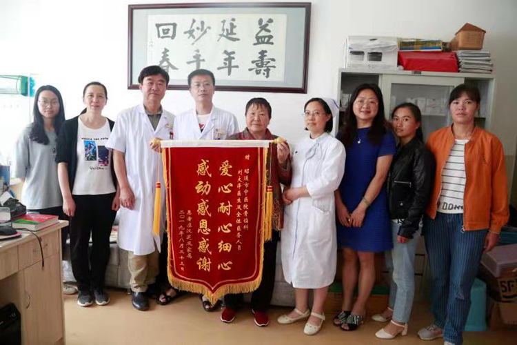 近日,一患者及家属将一面写有“爱心、耐心、细心;感动、感恩、感谢”的锦旗送到我院骨伤科。该患者饱受双膝关节疼痛20余年,在我院骨伤科行双膝关节置换术后,现已可以行动自如、正常生活了。