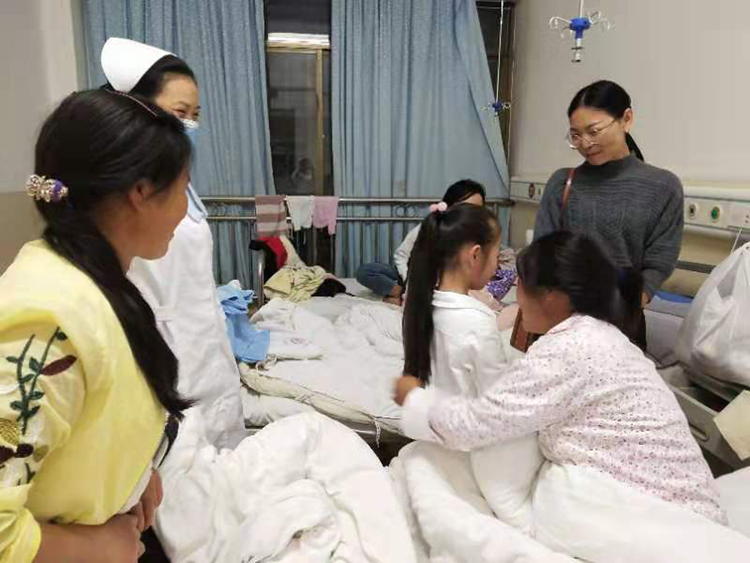 据悉,该产妇年幼因病致双目失明,丈夫智力低下,已育有两女,家境十分贫寒。入院完善相关检查后,主管医生为其制定了最佳的生产方案及产后康复计划,并于当日顺利产下一名男婴,但不幸的是该男婴患有先天性唇腭裂,且除了智力低下的丈夫在,无人照顾这对可怜的母子。于是,妇产科的护士们主动给这对母女当起了保姆,给小孩子洗澡、穿衣服、喂奶、换尿片……护士杨琼芬更是利用休息时间携带女儿看望慰问这对母子,并送来了水果、月饼、毛毯及一些必需品。在妇产科医护人员的精心照料下,这对母子已平安出院。