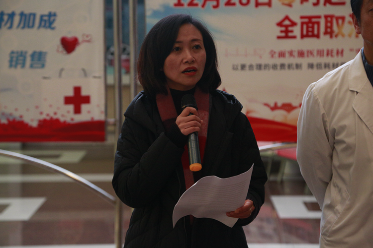 12月27日晚23:40,我院在门诊大厅举行了全面取消医用耗材加成启动仪式,市医保局党组书记、局长陈燕出席了启动仪式,我院在家领导班子及相关科室负责人参加了仪式,仪式由副院长合雄主持。